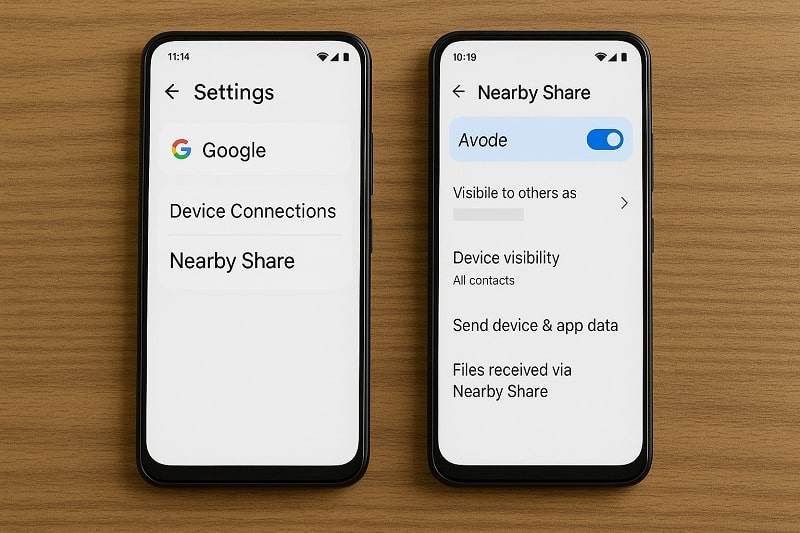 Step 1: Go to Settings > Google > Device Connections > Nearby Share on both phones and enable it.