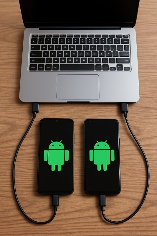 Step 1: Use USB cables to connect both Android devices to your PC or laptop.