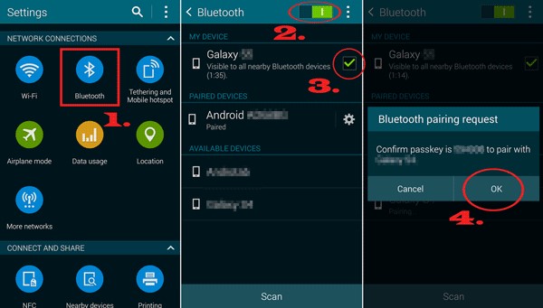 Step 2: Pair the devices by searching for available devices and confirming the code on both screens.