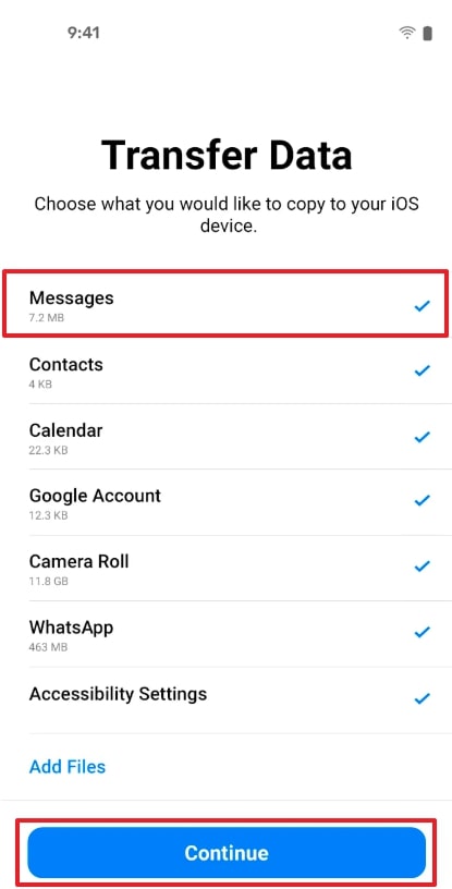 Choose “Messages” and tap the “Continue” button.