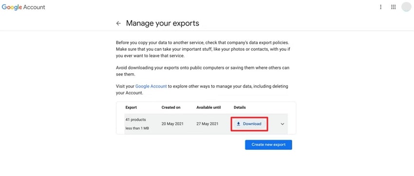 Method 4. Use Google Takeout to Download and Transfer Contacts