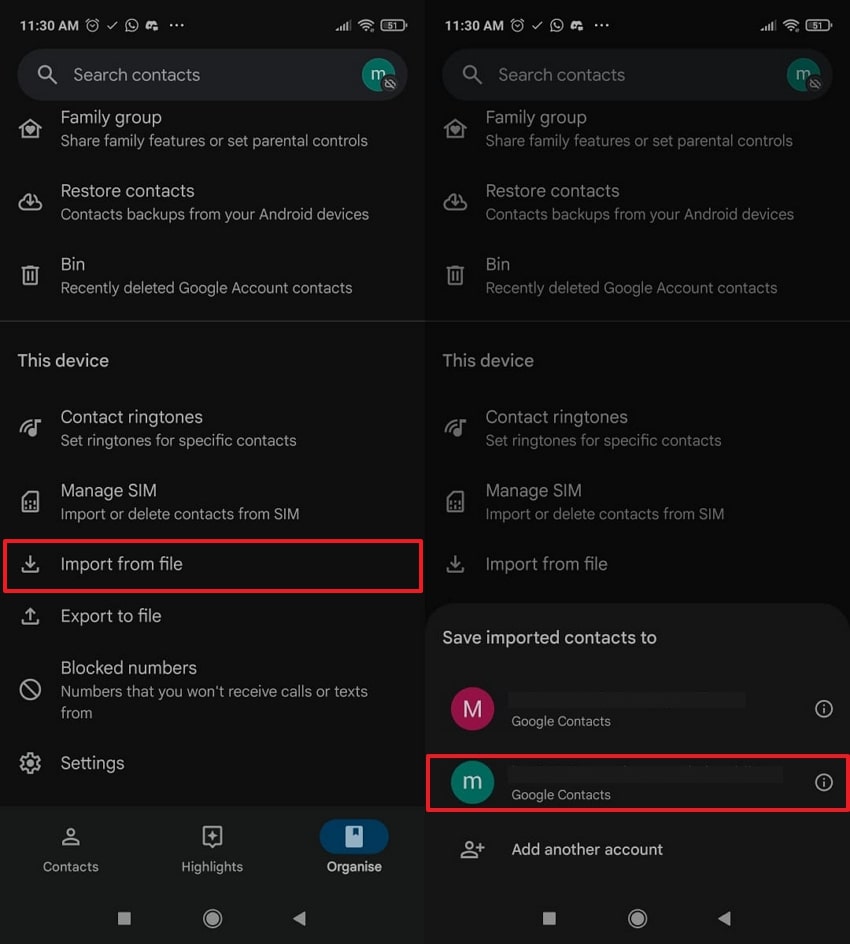 A convenient way to transfer contacts between Gmail accounts is through your smartphone’s built-in Contacts app. It directly integrates with Google services and allows you to leverage your phone’s native tools to import and export contacts. The approach is to first export the contacts stored in your old Gmail account and import them into your new account. For this app-based migration, you need to follow the given tutorial below: