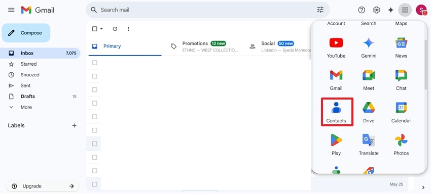 For how to move Gmail contacts to another Gmail account, pursue contacts migration via Gmail. This method is useful for users already working within their Gmail app and who want an instant move to their other account. Follow the instructions for this method that ensure no data loss with the support of the Google Contacts app: