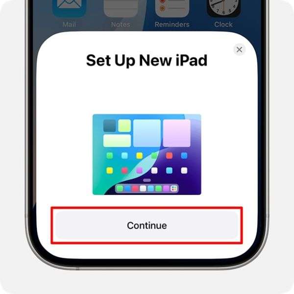 Turn on "Bluetooth," the Wi-Fi on the old iPhone and the iPad, and press the "Continue" button from the bottom-up "Set Up New iPhone/iPad" menu.