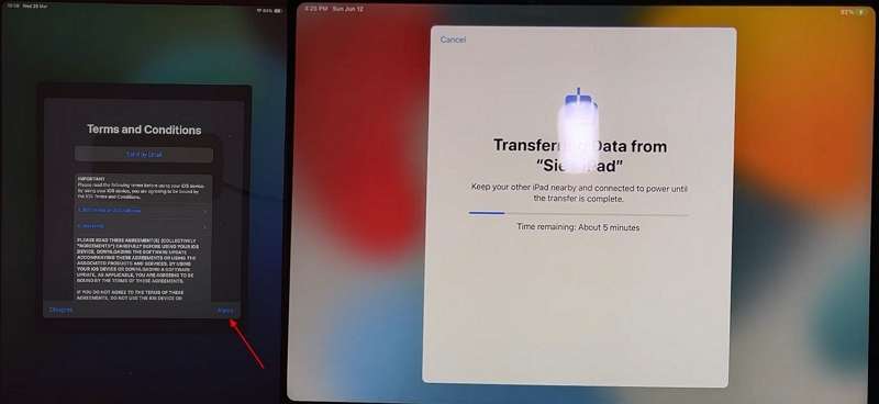 On the next screen, allow permission to the new iPad device, and after a few more setting activations, your data will be transferred to your new device.