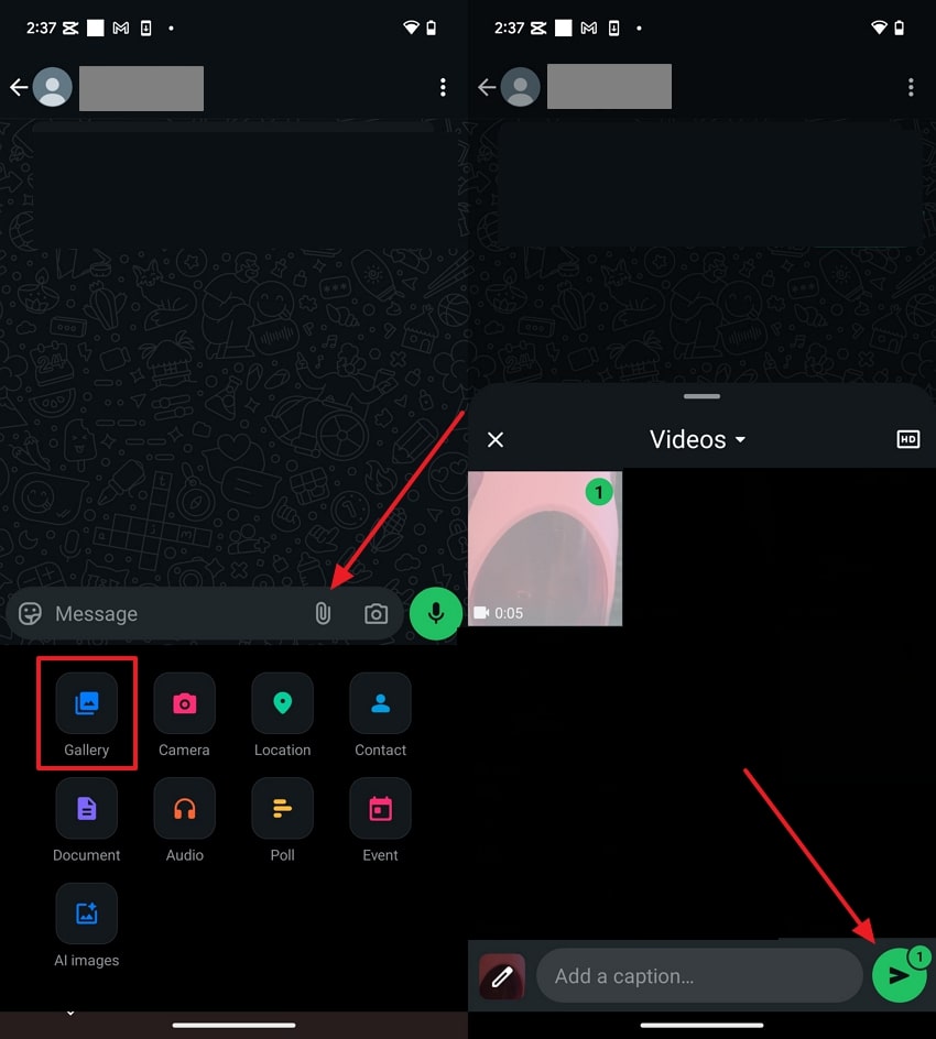 Building on previous sharing methods, a convenient approach for sharing your favorite clips is to opt for social messaging apps. WhatsApp is one platform for transferring video files with full privacy and security, thanks to end-to-end encryption. Not to mention, it lets you choose whether to download videos manually or automatically. Follow the steps below to effortlessly transfer video from Android to iPhone: