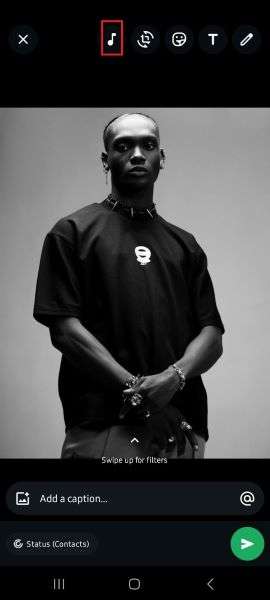 How do you add music to your WhatsApp status? It's very easy. Just tap on the video or photo you want to upload and tap on the Music icon at the top of your screen. Then, choose the song you wish to and hit send.