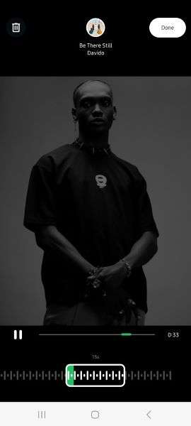 - Tap on the Arrow icon next to your preferred song and use the Slider at the bottom of your screen to choose which part of the song fits your moment.