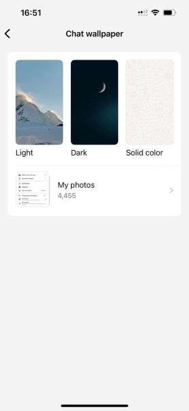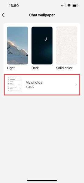 - Tap Choose from gallery to create a custom chat background if you don’t like any of the pre-set chat wallpapers.