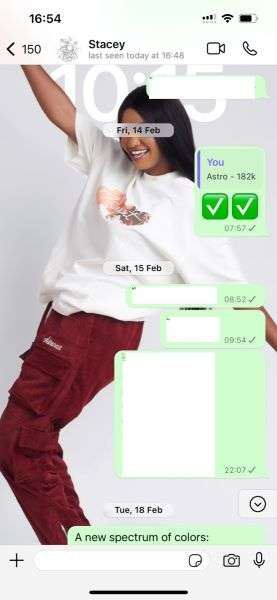 - I used an image of my customer wearing a cloth from my clothing brand as our new chat wallpaper to show her how much I value her support.