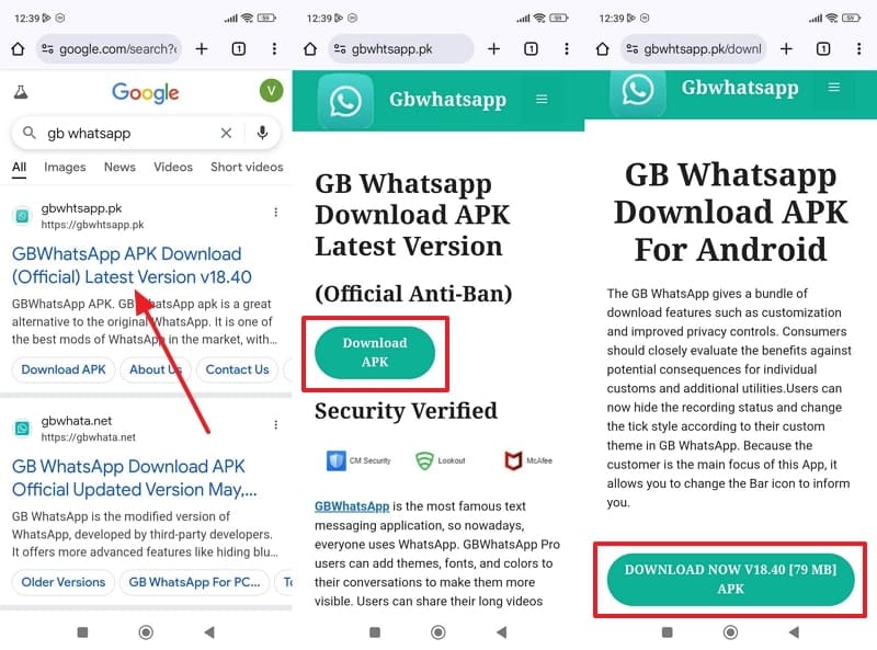 Step 1. Access your preferred browser on your mobile and search for "GB WhatsApp" sites. After that, open the appeared site and press the "Download APK" button. Next, click the "Download Now APK" button and proceed to the next step.