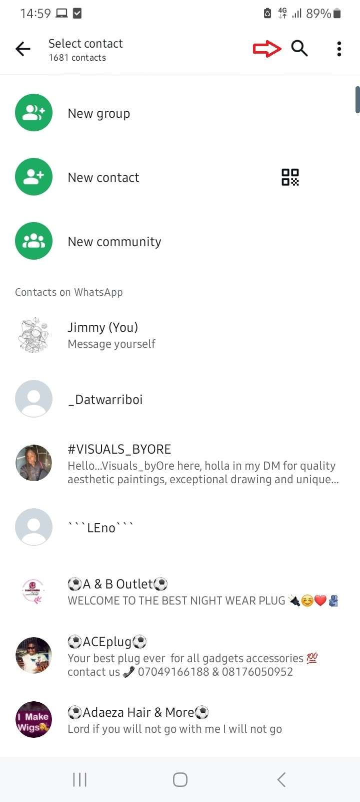 - WhatsApp will immediately refresh and update your contact list. You can search for new or missing contacts using the Search icon on the screen.