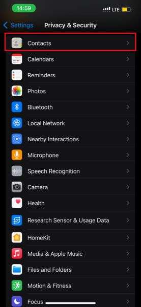 - Tap on Contacts at the top of the screen to view the list of apps that have access to your iPhone contact list.