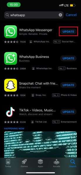 - Tap on the Update icon next to the app to download the latest version of WhatsApp for your device to access your contacts.
