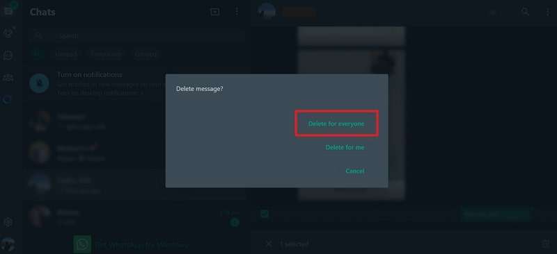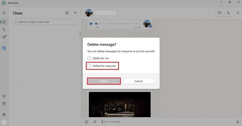 Step 2. From the pop-up, check the “Delete for Everyone” option and click the “Delete” button to complete the recall.