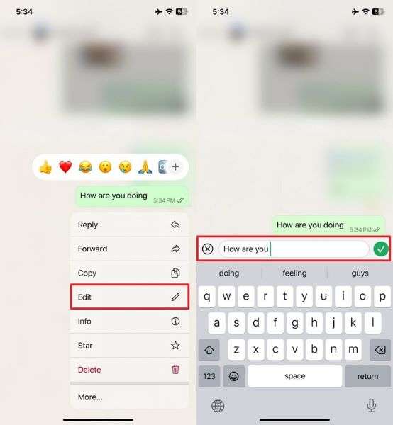 Not every message requires a full recall, as it may be just a typo, a missing word, or a quick clarification. Despite choosing to recall a message on WhatsApp, you can follow the stepwise guide for a quick edit:
