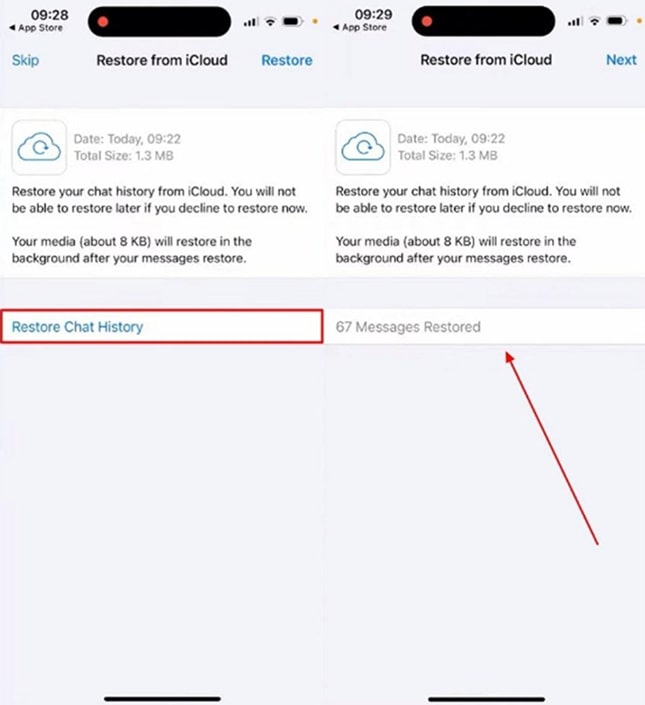 Step 2. Afterward, click the “Restore Chat History” button to recover all old messages from your partner's messaging app.