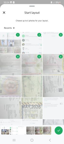 - Select up to six images from your photo album and tap on the Next/Checkmark icon at the bottom of your screen.