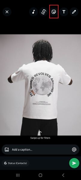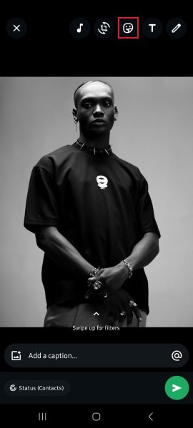- Select a photo or video from your gallery and tap on the Stickers icon at the top of the screen.