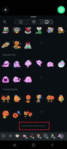 - You will see dozens of WhatsApp stickers to choose from. You can choose from one of the available stickers or tap on the Browse More Sticker Packs button to see more.