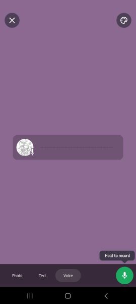 - Hold the green Microphone icon at the bottom-right corner of your screen to record your voice status.