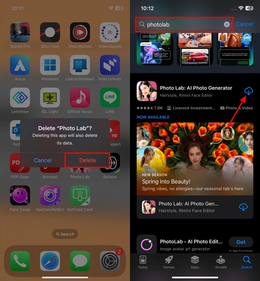 Step 2. Hit the “Delete” option again. Next, search the app on the “App Store” app and press the “Download” icon.