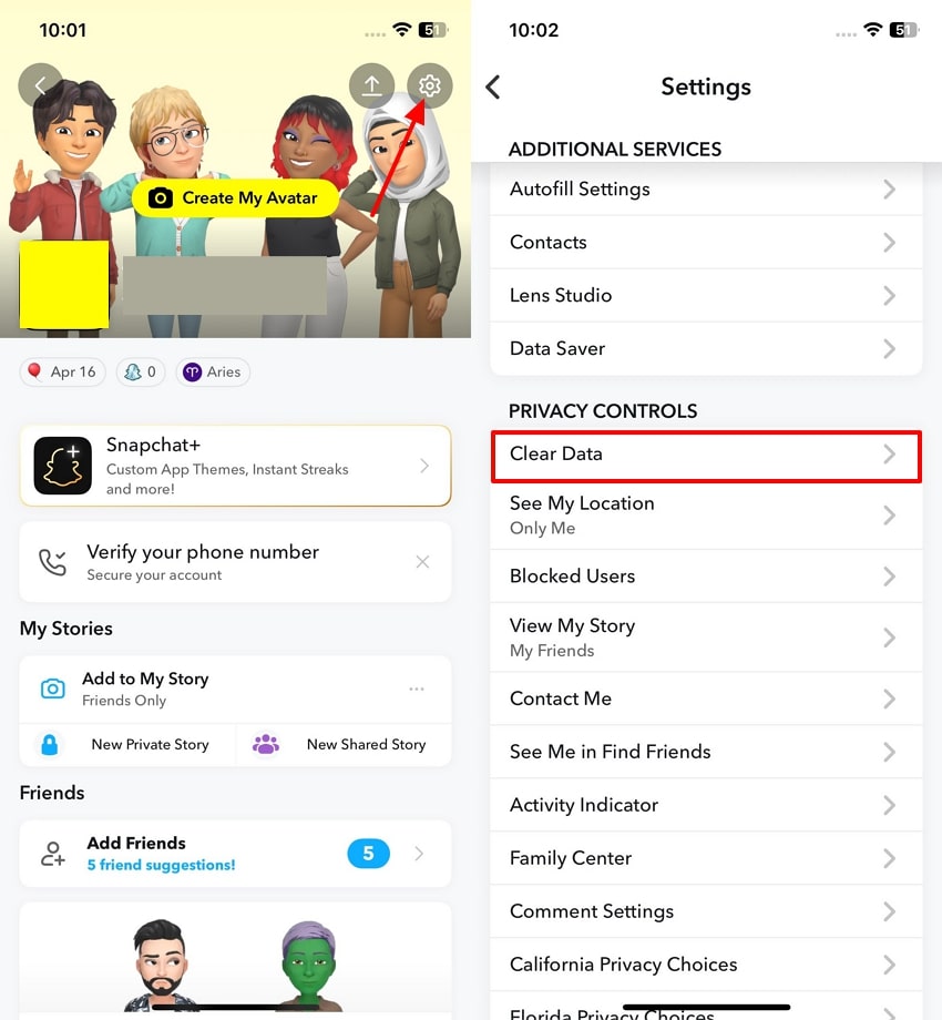 Step 1. Access the “Settings” icon and hit the “Clear Data” option.