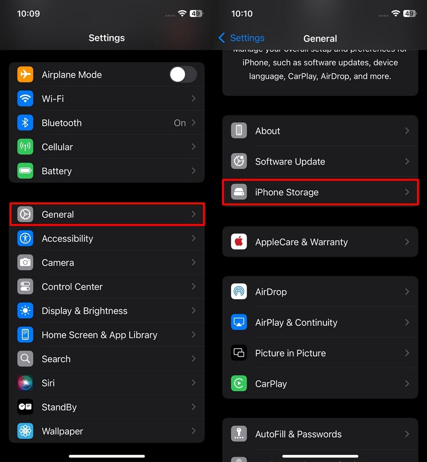 Step 1. Open the “General” tab in the “Settings” app and tap the “iPhone Storage” feature.