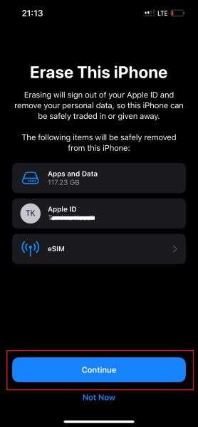 Tap on Continue to confirm your prompt, then wait till the reset is complete.