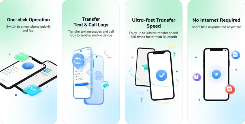 Apart from its software, MobileTrans App lets you transfer any type of data, including contact numbers and messages, from Android to iOS or vice versa. Using this app, users can move their valuable content, such as HD videos, at an impressive speed of 30MB per second. You can connect two phones by scanning a QR code and moving data without any limitations.