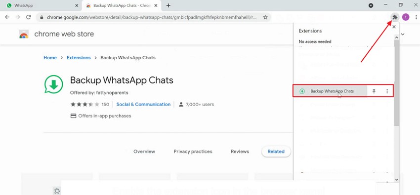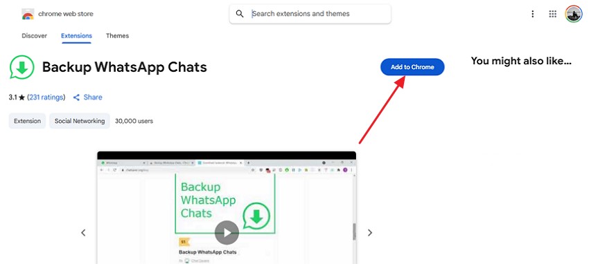 Step 1. From the Chrome Web Store, search for the "Backup WhatsApp chat" > "Add to Chrome" option.