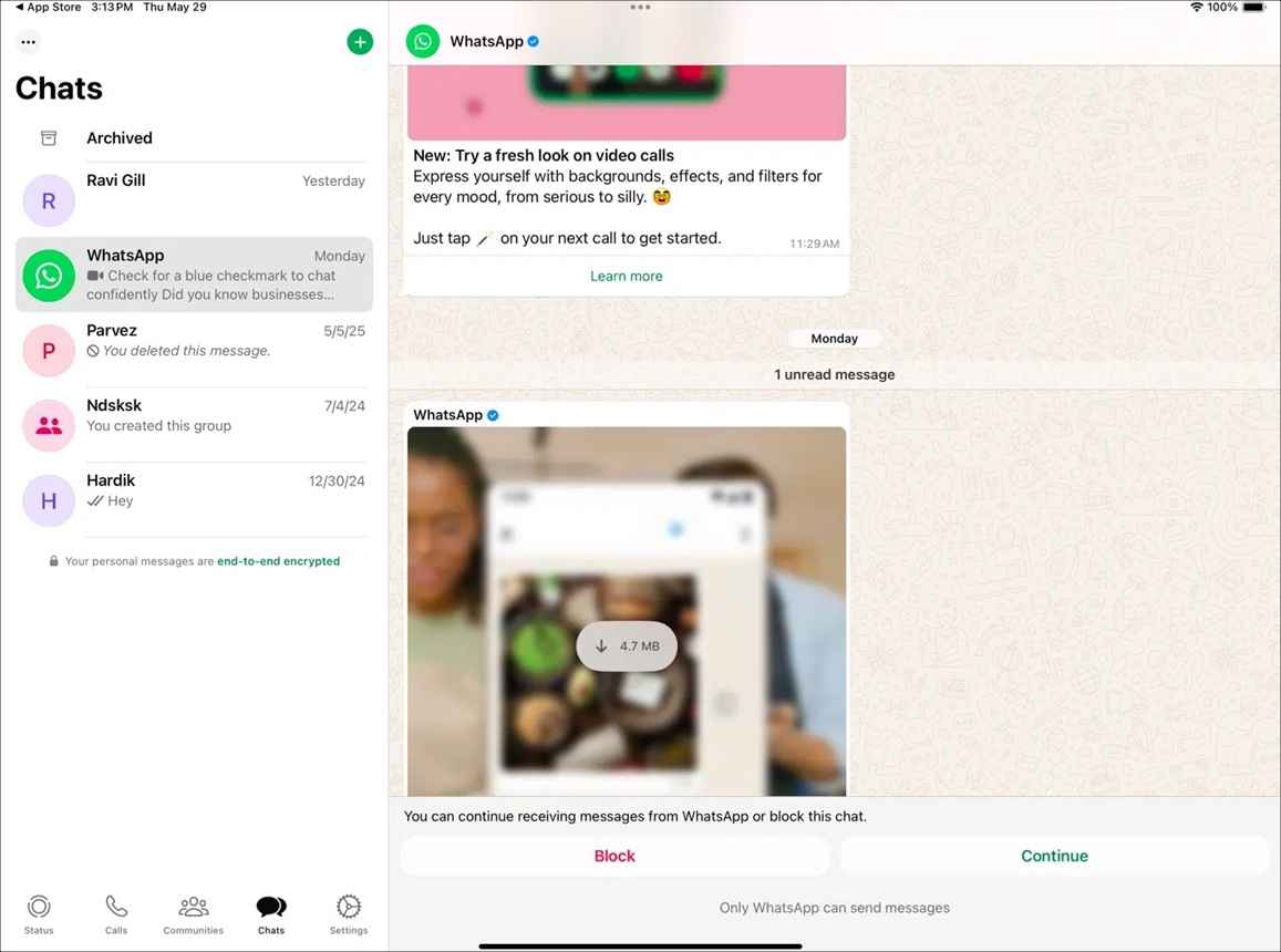 WhatsApp for iPad has all the latest features you have been waiting for. Including Communities, Channels, and Status updates. Video calls look better on the big screen, and group chats are easier to follow with more space. This beta version brings the full messaging experience to your tablet.