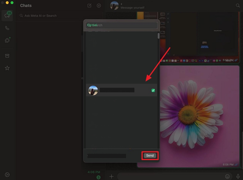 Step 2. Choose a chat and press the "Send" button to share a selected photo.